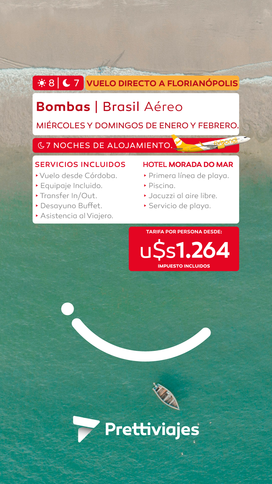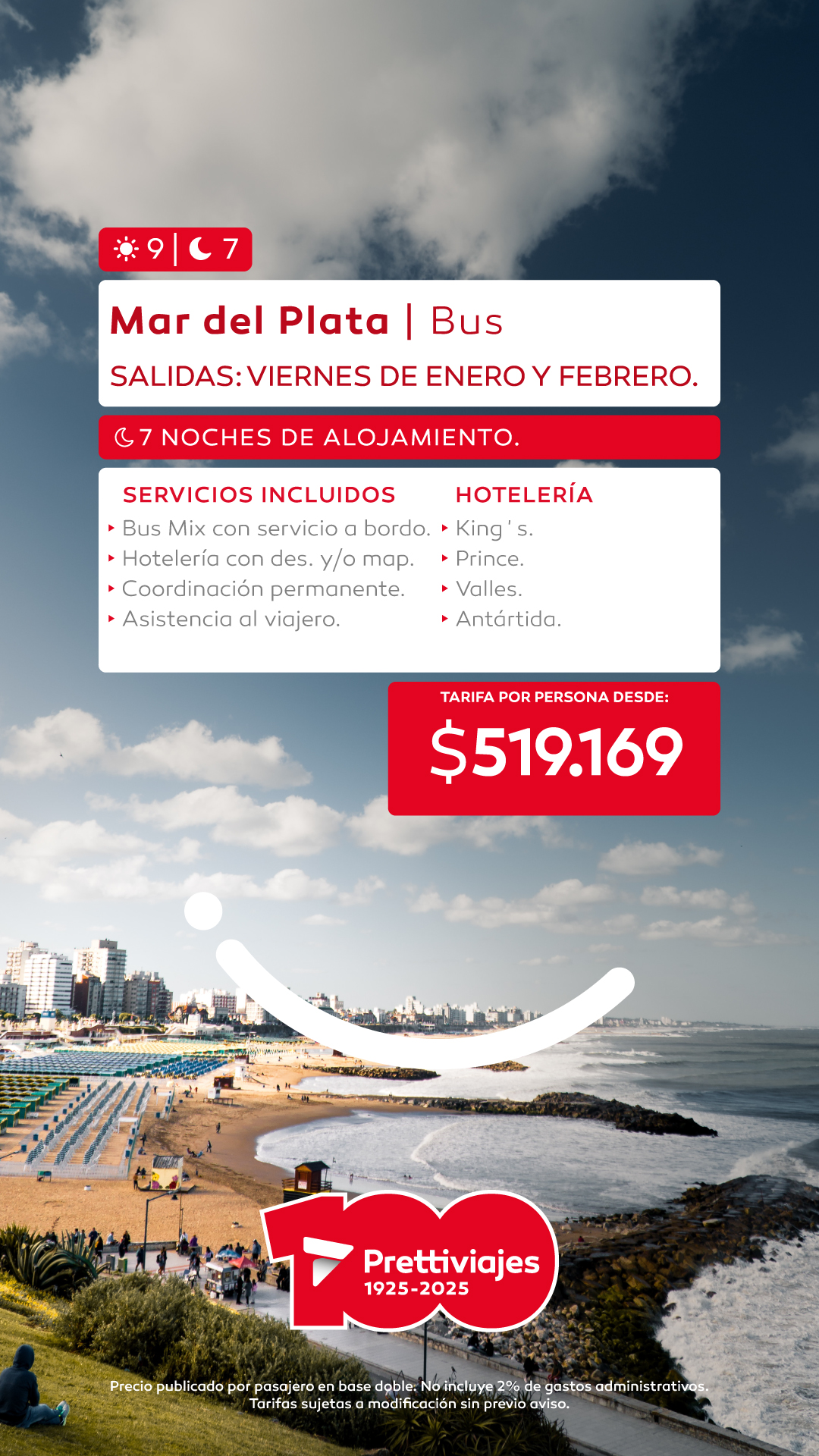 Flyers Home Flyers Flyers Bus Catamarca - Noviembre (Bus) *Click en la imagen para descargar Cataratas - Noviembre (Bus) *Click en la imagen para descargar Cataratas - Diciembre (Bus) *Click en la imagen para descargar Caviahue, Copahue y Pehuenia (Bus) *Click en la imagen para descargar Puerto Madryn - Noviembre (Bus) *Click en la imagen para descargar Mar del Plata (Bus) *Click en la imagen para descargar Villa Gesell (Bus) *Click en la imagen para descargar Pinamar (Bus) *Click en la imagen para descargar San Bernardo (Bus) *Click en la imagen para descargar Mendoza - noviembre (Bus) *Click en la imagen para descargar Verano 2026 Verano 2026 Canasvieiras (Bus) *Click en la imagen para descargar Verano 2026 Bombinhas (Bus) *Click en la imagen para descargar Verano 2026 Camboriú (Bus) *Click en la imagen para descargar Verano 2026 Canasvieiras (Bus) *Click en la imagen para descargar Verano 2026 Bombinhas (Bus) *Click en la imagen para descargar Verano 2026 Camboriú (Bus) *Click en la imagen para descargar Bombas - Brasil (Aéreo) *Click en la imagen para descargar Canasvieiras (Aéreo) *Click en la imagen para descargar Camboriú (Aéreo) *Click en la imagen para descargar Sur de Brasil (Aéreo) *Click en la imagen para descargar Jamaica - Caribe (Aéreo) *Click en la imagen para descargar Aruba - Caribe (Aéreo) *Click en la imagen para descargar Flyers Aéreos Bariloche + Villa La Angostura (Aéreo) *Click en la imagen para descargar Ushuaia + El Calafate - Noviembre (Aéreo) *Click en la imagen para descargar Ushuaia + El Calafate - Enero (Aéreo) *Click en la imagen para descargar Bariloche- 18 noviembre (Aéreo) *Click en la imagen para descargar Bariloche- 22 Noviembre (Aéreo) *Click en la imagen para descargar Bariloche - 5nts (Aéreo) *Click en la imagen para descargar El Calafate- Enero y Febrero (Aéreo) *Click en la imagen para descargar Salta - Noviembre (Aéreo) *Click en la imagen para descargar Bariloche - Marzo y Abril (Aéreo) *Click en la imagen para descargar Bariloche - 4nts (Aéreo) *Click en la imagen para descargar Circuitos Mercados navideños - alemania (Circuito) *Click en la imagen para descargar Año nuevo en Nueva York (Circuito) *Click en la imagen para descargar Mundial 2026 - Argentina (Circuito) *Click en la imagen para descargar Flyers Internacionales / Regionales Miches - noviembre (Aéreo) *Click en la imagen para descargar Bayahibe - Noviembre (Aéreo) *Click en la imagen para descargar Rio de Janeiro - 2026 (Aéreo) *Click en la imagen para descargar Turquia - Tierra de imperios (Aéreo) *Click en la imagen para descargar Sur de Brasil (Aéreo) *Click en la imagen para descargar buzios - 2026 (Aéreo) *Click en la imagen para descargar Bombas - Brasil (Aéreo) *Click en la imagen para descargar Canasvieiras (Aéreo) *Click en la imagen para descargar Camboriú (Aéreo) *Click en la imagen para descargar Imbassaí - Brasil (Aéreo) *Click en la imagen para descargar Salvador de Bahía (Aéreo) *Click en la imagen para descargar Costa do Sauipe - Brasil (Aéreo) *Click en la imagen para descargar Punta Cana 2026 (Aéreo) *Click en la imagen para descargar Argentina, Bolivia y perú (Aéreo) *Click en la imagen para descargar