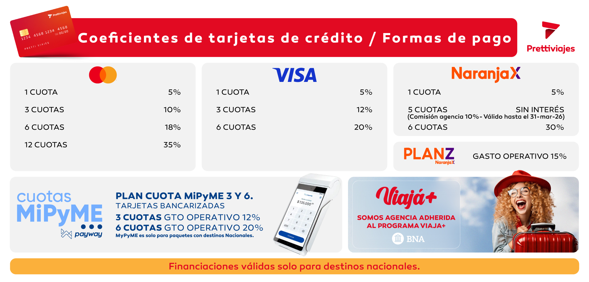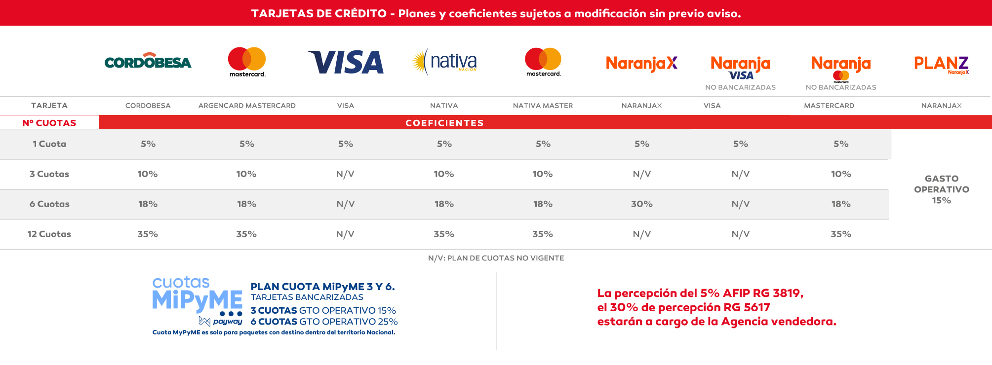 COEFICIENTES TARJETAS / FORMAS DE PAGO